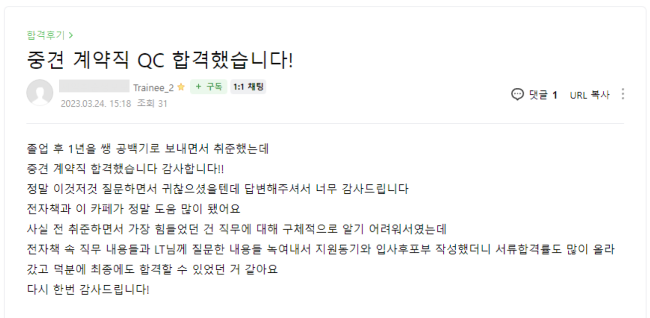 최종 합격의 기쁜 소식도 전해왔습니다.